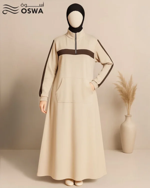 فيه سوستة عند الصدر بتسهّل اللبس والحركة، وجيبين فالجنب بيخلوه عملي لأي خروجة سريعة.